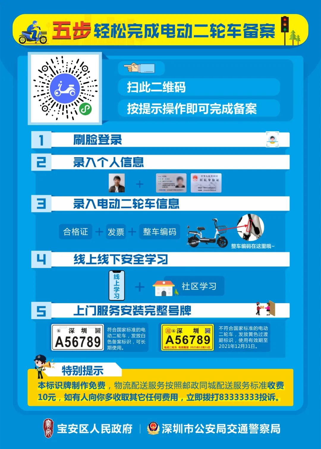 現階段,電動車備案試點工作僅在寶安區(qū)、光明區(qū)開展,一圖看懂電動車備案流程
