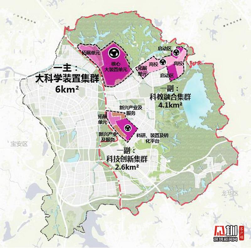 2019年8月18日,國家發(fā)布了《中共中央國務(wù)院關(guān)于支持深圳建設(shè)中國特色社會(huì)主義先行示范區(qū)的意見》,提出以深圳為主陣地建設(shè)綜合性國家科學(xué)中心。市規(guī)劃和自然資源局地區(qū)規(guī)劃處副處長葉陽介紹,光明科學(xué)城北起深莞邊界,東部和南部以光明區(qū)轄區(qū)為界,西部以龍大高速和東長路為界,規(guī)劃總面積99平方公里,將構(gòu)建“一主兩副”的科學(xué)裝置集聚區(qū)空間布局。