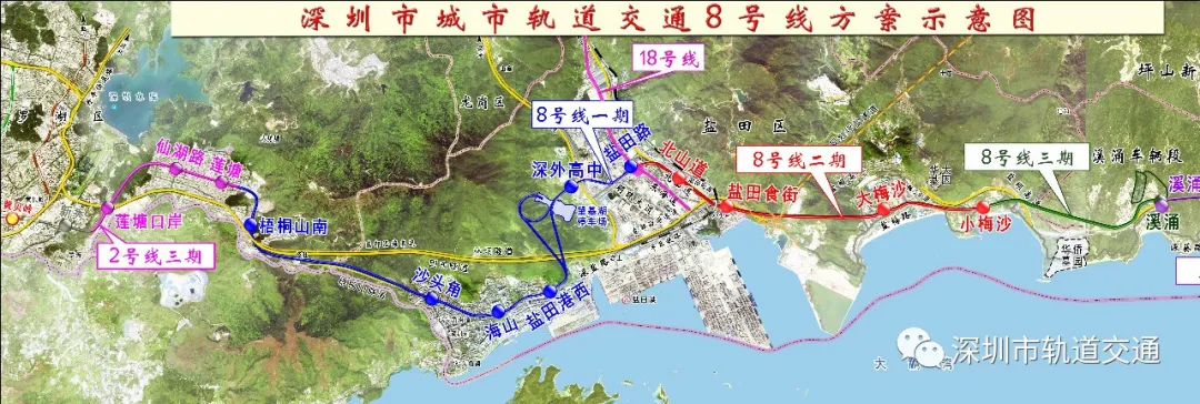地鐵8號(hào)線一期由2號(hào)線三期蓮塘站站后接出,終點(diǎn)設(shè)于鹽田港后方陸域的鹽田路站,線路長約12.36km,均采用地下敷設(shè)。線路共設(shè)車站6座,包含蓮塘主所和望基湖停車場。預(yù)計(jì)于今年底開通初期運(yùn)營。