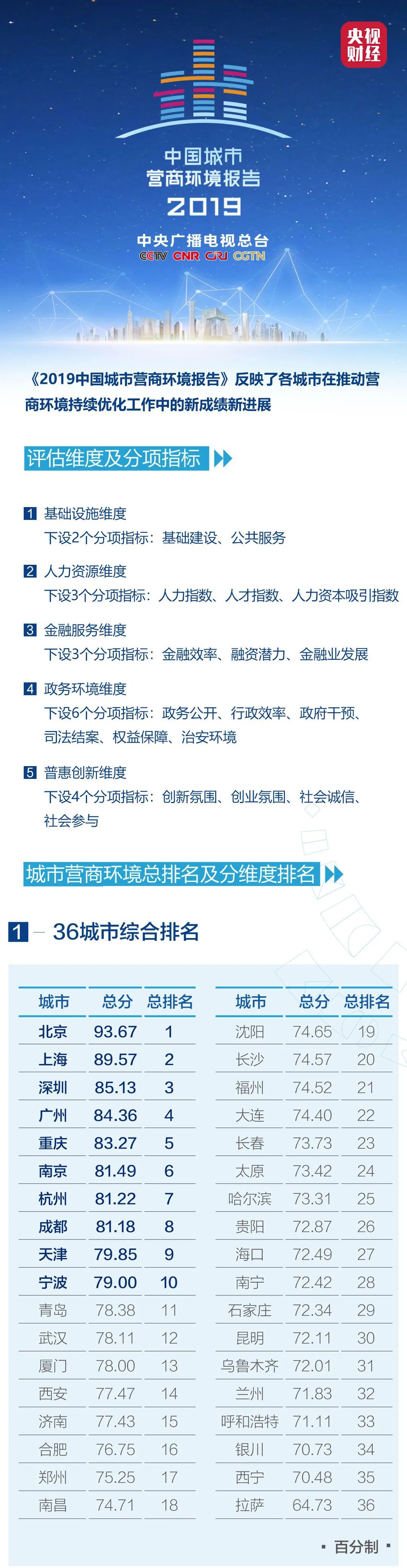 《2019中國城市營商環(huán)境報(bào)告》在對(duì)標(biāo)世界銀行營商環(huán)境評(píng)價(jià)體系標(biāo)準(zhǔn)、參照國際同行的評(píng)價(jià)指標(biāo),同時(shí)兼顧中國特色的原則上,重點(diǎn)圍繞與市場主體密切相關(guān)的指標(biāo)維度構(gòu)建起中國城市營商環(huán)境的評(píng)價(jià)體系。報(bào)告中的綜合評(píng)價(jià)排名對(duì)象為4個(gè)直轄市、27個(gè)省會(huì)城市和自治區(qū)首府,以及5個(gè)計(jì)劃單列市。報(bào)告在原有的評(píng)價(jià)范圍之上,首次增加了對(duì)經(jīng)濟(jì)總量位居前100名活躍城市的評(píng)價(jià)。