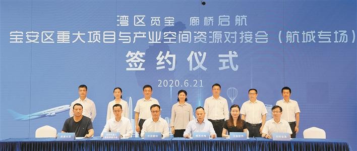 寶安區(qū)重大產業(yè)項目與產業(yè)空間資源對接會·航城專場簽約儀式現(xiàn)場。