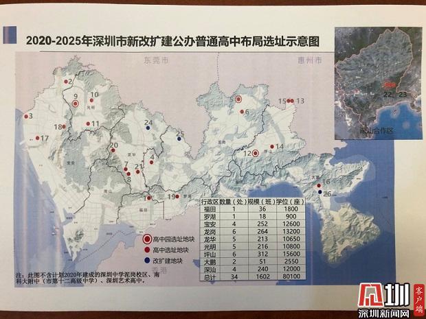2020 -2025年深圳市新改擴建公辦普高布局選址示意圖