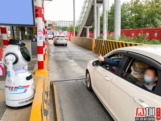 ▲5G機(jī)器人義警“黃田田”提醒回深車(chē)輛掃碼登記。