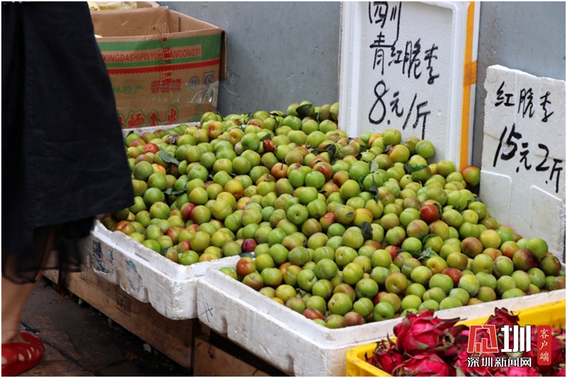 7月8日上午8時(shí),記者在深圳福田農(nóng)批市場(chǎng)看到,已經(jīng)有不少市民早早趕到市場(chǎng)選購新鮮的瓜果蔬菜。市場(chǎng)內(nèi)不斷有貨車開進(jìn)開出,各店家都在忙著打理水果,叫賣;很多人相信,早上的水果最新鮮,光是看看水果攤位上堆成小山的水果就很愉悅:紅的荔枝,黃的橙子,青的脆李……采購的市民細(xì)細(xì)挑選貨比三家,滿載而歸,好一派有滋有味。