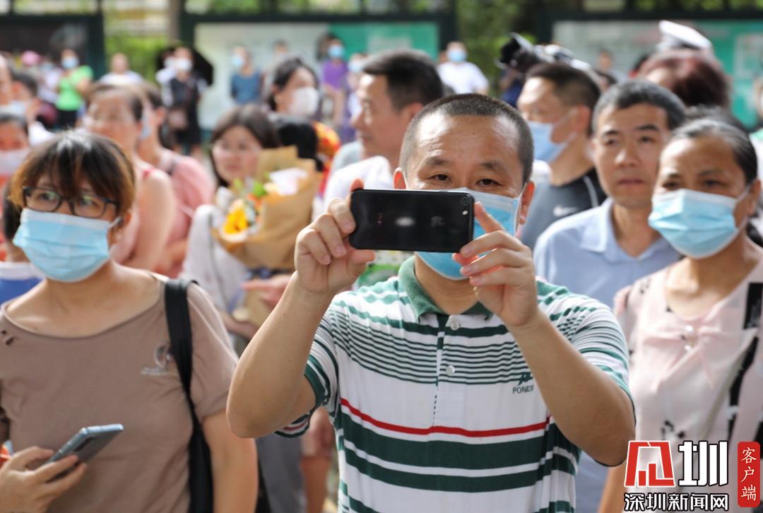 家長舉起手機,靜候于深圳高級中學(xué)考點門口。