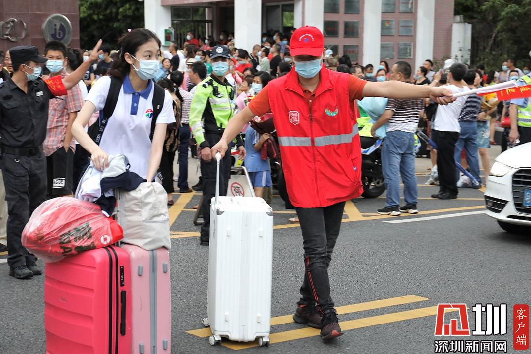 深圳高級中學(xué)考點外家長看見孩子笑臉相迎。