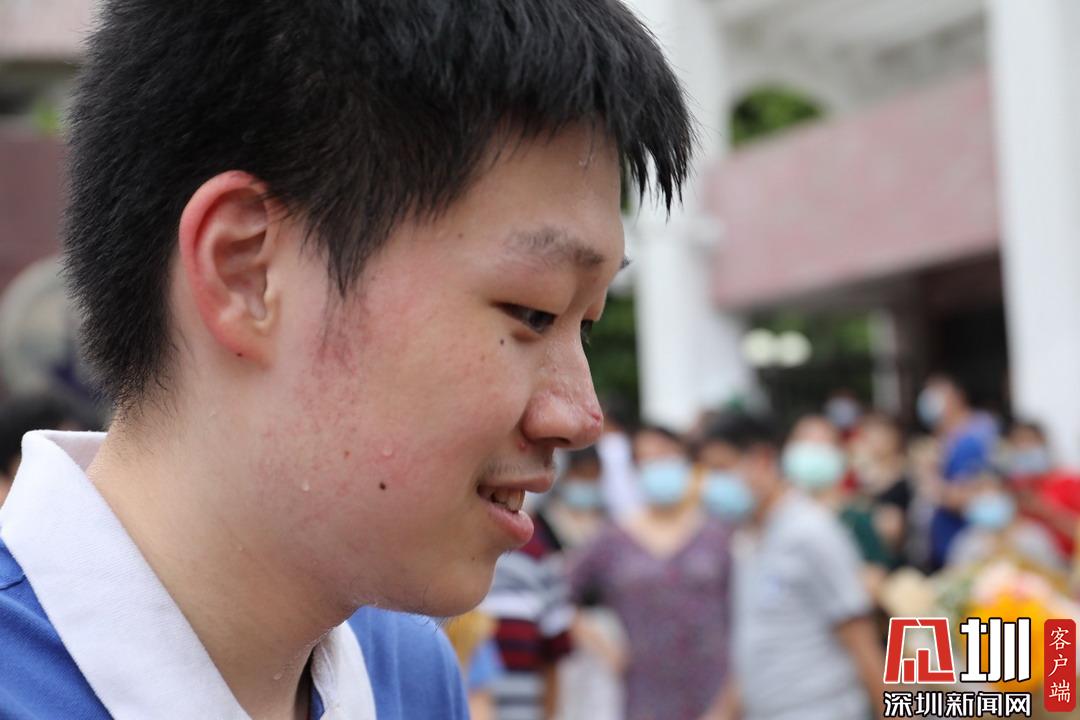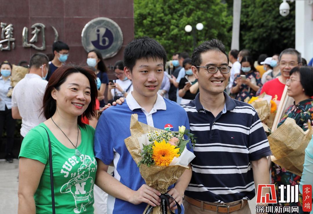 深圳高級中學(xué)考生走出考場收到父母鮮花。