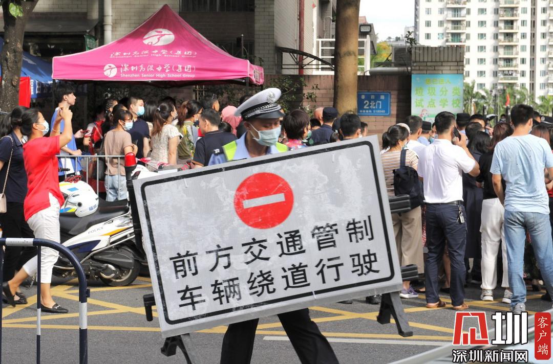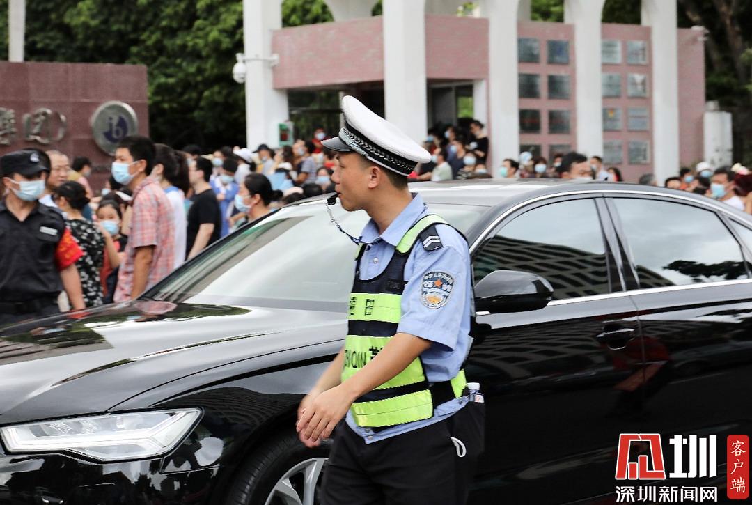 深圳高級中學(xué)考點外,福田交警加強周邊道路巡邏管控。