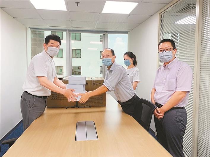 日籍華人(左一)張昊為深圳捐贈(zèng)口罩。