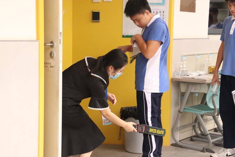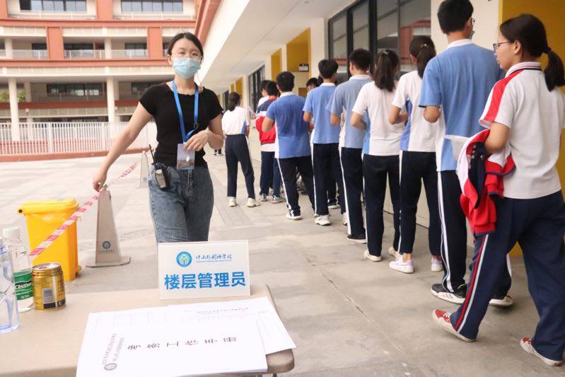 坪山同心外國(guó)語(yǔ)學(xué)校的考生進(jìn)入教室。(記者焦子宇耿超逸)
