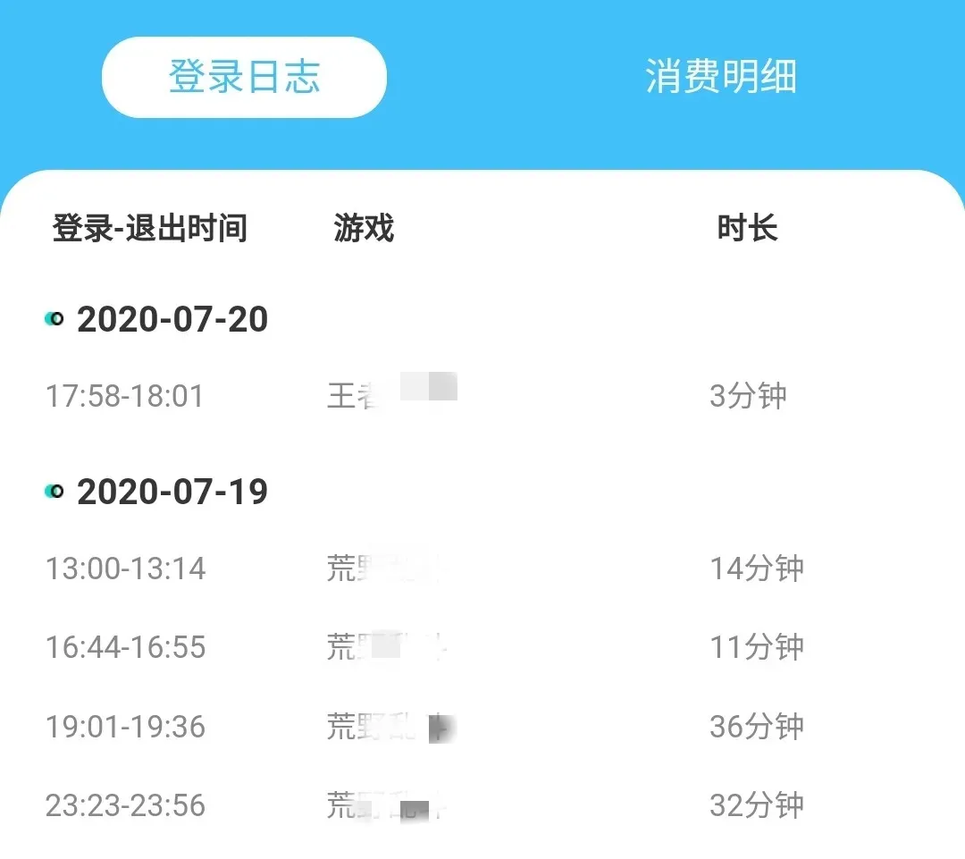 點(diǎn)擊進(jìn)入詳情頁,甚至還能看到最近7天的統(tǒng)計情況,總共玩多長時間,每天玩多長時間,每次登陸哪款游戲,登錄了多久,什么時候退出游戲……