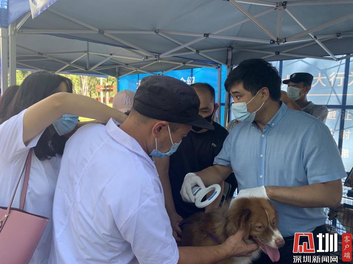 活動(dòng)現(xiàn)場(chǎng),不少養(yǎng)犬市民攜犬前來(lái)咨詢?nèi)恍酒⑸鋯?wèn)題,多個(gè)犬只在現(xiàn)場(chǎng)接受了芯片注射,犬只在注射芯片后無(wú)異常。城管部門(mén)執(zhí)法人員、文明養(yǎng)犬志愿者和寵物醫(yī)院醫(yī)生現(xiàn)場(chǎng)解答犬只芯片相關(guān)問(wèn)題,并現(xiàn)場(chǎng)為福田區(qū)辦理了養(yǎng)犬登記證的犬只植入電子芯片。