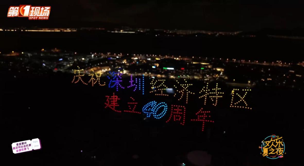 作為本次直播的協(xié)辦單位,深圳世界之窗、深圳錦繡中華·中國民俗文化村、深圳歡樂谷和深圳歡樂海岸,積極配合響應(yīng),用最“青春”的玩法吸引最“潮流”的年輕人。直播的最后,恢弘燈光秀、絢爛煙火展、競速無人機(jī)點(diǎn)亮深圳夜空,千架無人機(jī)同時(shí)升空幻化鵬城美景,變幻出“慶祝深圳經(jīng)濟(jì)特區(qū)建立40周年”等字樣,為深圳獻(xiàn)禮。