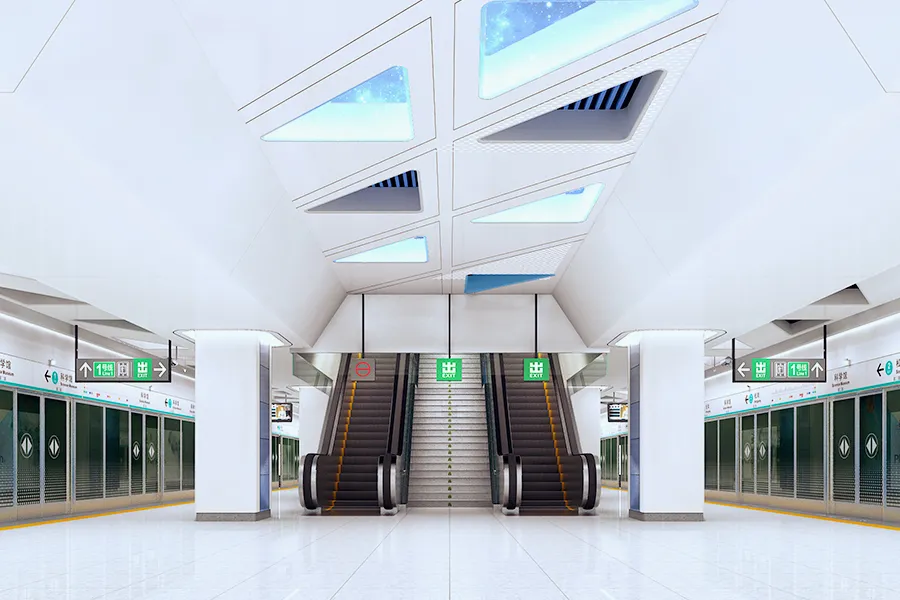 冬瓜嶺站地處福田區(qū)天威視訊附近,車站沿規(guī)劃福田彩田路南北向布置,車站為地下二層一島一側(cè)式站臺鋼筋混凝土箱形框架結(jié)構(gòu)。車站共設出入口7個:A、B、C、D、3個物業(yè)出入口(E、F、G口)。