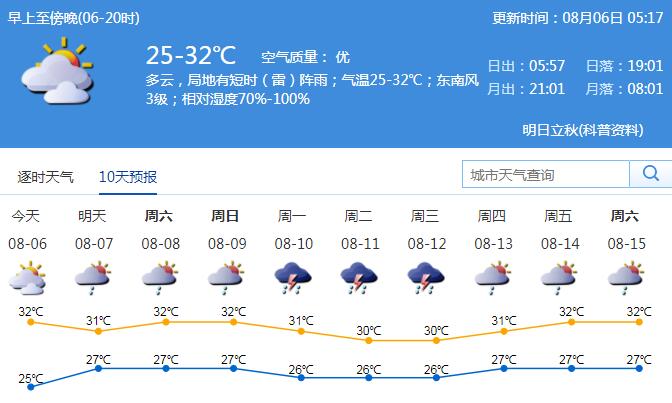 見圳客戶端·深圳新聞網(wǎng)2020年8月6日訊 近幾天的暴雨令深圳炎熱天氣有所緩解,8月6日起,暴雨將暫告一段落。據(jù)市氣象臺預(yù)測,未來4天陽光增多,氣溫上升,天氣悶熱。其中,6日有(雷)陣雨,陽光增多,氣溫26℃~32℃;7日至9日多云間晴天,有短時陣雨,天氣悶熱;10日至12日降雨增多,有陣雨或雷陣雨,部分時間雨勢較大。