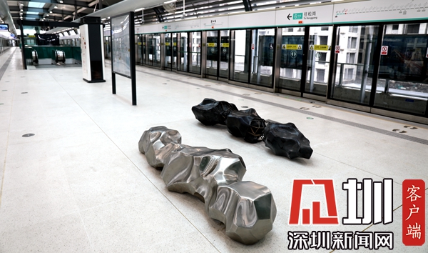 該站文化藝術(shù)品采用金屬鍛造而成,作品選用中國傳統(tǒng)經(jīng)典的“景石”造形,進行解構(gòu)、重組的藝術(shù)處理。