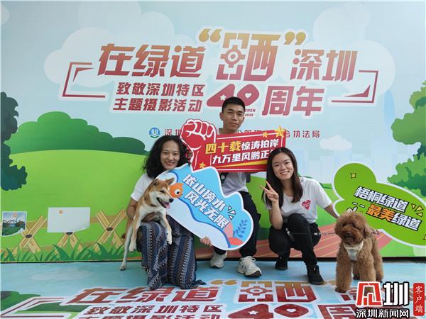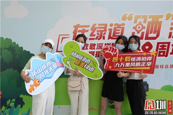 “我是在‘i羅湖’公眾號上看到消息,說是周日梧桐綠道會舉辦攝影活動,于是帶著家人來游玩拍照”。羅湖市民周先生說。這里有深圳和綠道元素的標語、頭箍、合影異形牌等道具,拍照打卡很有紀念意義,而且還有專業(yè)的攝影師和智能照片打印機?!拔覀円患胰撕芫脹]有合影了”拿著剛打印出來的照片,周先生看著家人笑得很開心。