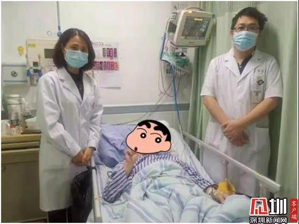王威回憶:“做了7組心肺復(fù)蘇后,劉先生似乎曾有輕微的反應(yīng)。我后來(lái)也沒(méi)敢松懈,一直堅(jiān)持做到醫(yī)護(hù)人員來(lái)到現(xiàn)場(chǎng)?!?/p> 病情危急 入院搶救后轉(zhuǎn)危為安 16:43分左右,羅湖醫(yī)院急診科醫(yī)護(hù)人員接到120指揮部出車(chē)通知后,以最快速度到達(dá)了現(xiàn)場(chǎng),立即開(kāi)始接手現(xiàn)場(chǎng)救治。當(dāng)時(shí),王威已經(jīng)為劉先生做了7分鐘心肺復(fù)蘇。醫(yī)護(hù)人員迅速評(píng)估劉先生生命體征,發(fā)現(xiàn)他仍無(wú)呼吸、無(wú)心跳,立即繼續(xù)心肺復(fù)蘇并即時(shí)進(jìn)行心電監(jiān)護(hù),建立靜脈通路,開(kāi)放氣道、球囊輔助通氣并注射腎上腺素。心電監(jiān)護(hù)提示室顫,在除顫2次后,劉先生恢復(fù)了自主呼吸和心跳,被送往羅湖醫(yī)院急診科進(jìn)一步救治。