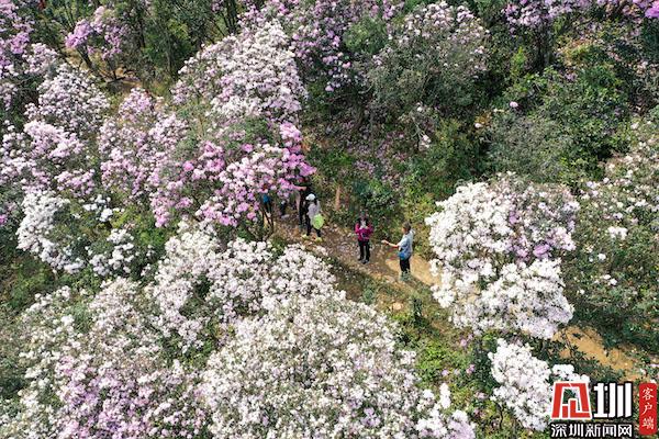 見圳客戶端·深圳新聞網(wǎng)3月16日訊(記者 劉晨 實習(xí)生 覃鈺清)近日,位于深圳羅湖區(qū)的梧桐山毛棉杜鵑陸續(xù)進入盛花期,點綴在山間的毛棉杜鵑燦爛盛開,蜂蝶飛舞間,將深圳的南國春意渲染得更加濃烈。不少市民游客前往梧桐山賞花踏青,飽覽春意。