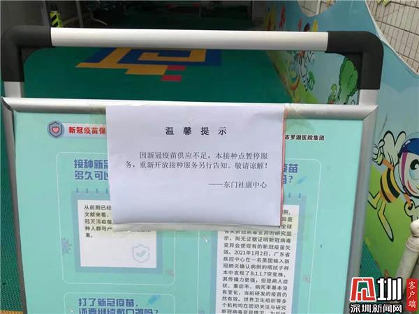 見圳客戶端·深圳新聞網(wǎng)4月7日訊(記者 彭桂紅 劉晨)“因新冠疫苗供應(yīng)不足,本接種點(diǎn)暫停服務(wù),重新開放接種服務(wù)另行告知。敬請(qǐng)諒解!——東門社康中心?!?月6日,記者在羅湖區(qū)東門社康中心看到,該社康貼出了疫苗暫時(shí)供應(yīng)不足的告知。記者隨后走訪了其他幾個(gè)接種點(diǎn),一些社康也紛紛貼出了類似溫馨提示。記者了解到,除羅湖外,其他區(qū)的接種點(diǎn)也出現(xiàn)了類似“缺苗”現(xiàn)象。對(duì)此,記者采訪了羅湖區(qū)衛(wèi)健局,相關(guān)負(fù)責(zé)人表示,這段時(shí)間轄區(qū)新冠病毒疫苗接種率大幅提升,目前缺苗只是暫時(shí)性的,正在加強(qiáng)調(diào)配,隨時(shí)可能到苗,請(qǐng)大家耐心等待,同時(shí)留意相關(guān)提示。