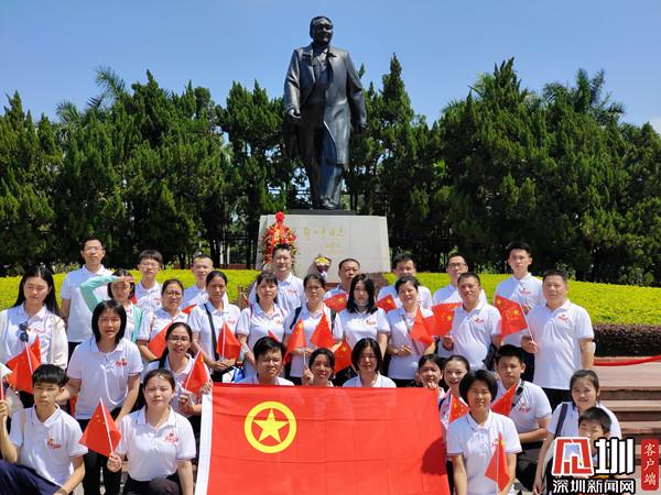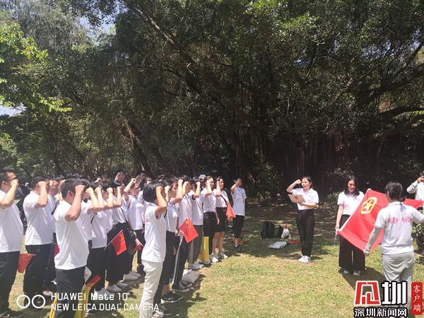 在鄧小平銅像廣場,大家精神抖擻、意氣風(fēng)發(fā),手持飄揚的旗幟,再一次舉起右手,莊嚴宣誓。