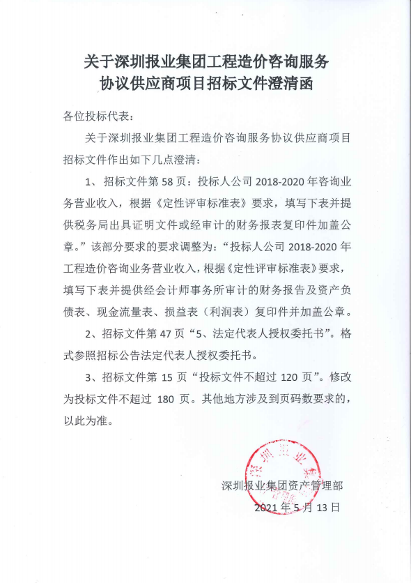 關(guān)于深圳報業(yè)集團工程造價資訊服務(wù)協(xié)議供應(yīng)商項目招標(biāo)文件澄清函