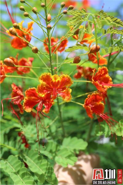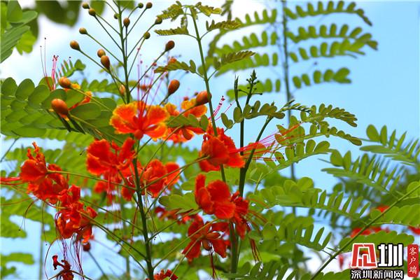 五月綻放全城的鳳凰花,映射著深圳這座城市的繁華與熱情,同時也給這座城市帶來勇敢熱烈的色彩。從鏡頭中可見,鳳凰花花團緊簇,在藍天的襯托下,那一簇簇火紅的花海張揚而又高調(diào)地綻放,為深圳“藍”染上了一抹紅。