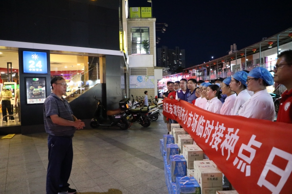 見圳客戶端·深圳新聞網(wǎng)2021年5月29日訊(記者 劉晨 通訊員 魏官明)前線抗疫接種疫苗,悉心慰問溫暖人心。5月28日晚,羅湖區(qū)東湖街道黨工委書記程時菊,黨工委副書記、辦事處主任劉慧堅,黨工委委員楊曉明,街道辦事處副主任李民一行,來到布心市場新冠疫苗臨時接種點看望慰問一線醫(yī)護工作者、工作人員及志愿者,向他們致以誠摯的問候和衷心的感謝。羅湖區(qū)人大代表、東湖商會會長黃志健代表商會送上了精心準(zhǔn)備的慰問品。