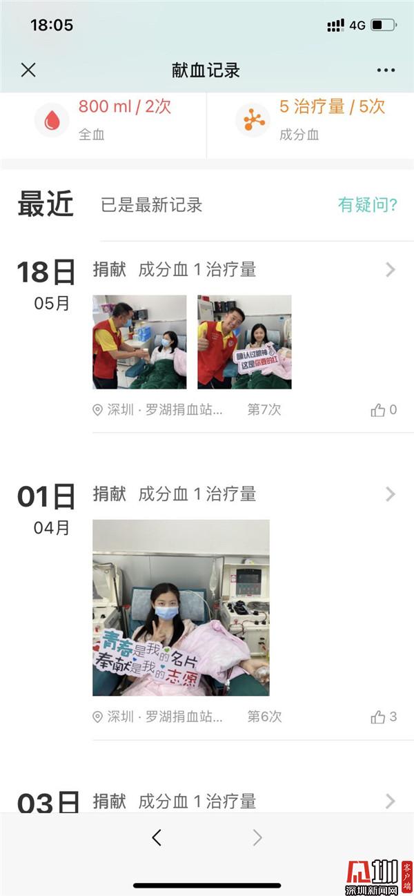 “工作之余有獻血的習(xí)慣,最近的一次是4月1日和5月18日。”