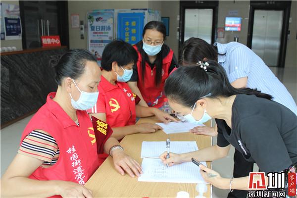 在社區(qū)“宣傳疫苗接種先鋒崗”前,忙碌著黨員的身影。社區(qū)居民林志文,是一名有著21年黨齡的老黨員。今年63歲的她身穿紅馬甲,臂戴“疫情監(jiān)督員”的紅袖章,精神抖擻地站在老圍花園E座出入口,笑容可掬地用本地話問:“靚仔,打疫苗了嗎?這里可以預(yù)約喲?!薄办n仔”聽到如此親切的鄉(xiāng)音,停下匆匆的腳步,“沒打呢,現(xiàn)在預(yù)約吧?!迸c林姐是最佳拍檔的老黨員尹小妹,她們都是本地人,平時(shí)除了唱歌跳舞,她們還積極參加社區(qū)活動,疫情當(dāng)前,她們冒著被感染的風(fēng)險(xiǎn),勇敢站出來,用自己的實(shí)際行動,詮釋著黨員的模范先鋒帶頭作用。
