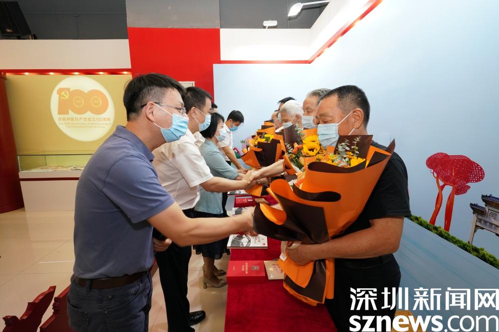 羅湖區(qū)委常委、宣傳部部長呂漫妮,羅湖區(qū)委組織部部務委員、人才工作局局長曹雙璽,羅湖區(qū)委宣傳部副部長、區(qū)文明辦主任張華嘉,深圳報業(yè)集團副總經(jīng)理朱永峰,清水河街道黨工委書記魏剛,清水河街道黨工委副書記劉曉春等共同為展覽揭幕。部分老兵代表出席了本次活動, 并向嘉賓和學生代表簽名送書。開幕式后,羅湖區(qū)、清水河街道和深圳報業(yè)集團領導為街道 " 光榮在黨 50 年 " 紀念章獲得者代表黨員頒發(fā)獎章,為街道辦 " 兩優(yōu)一先 " 榮譽獲得者代表頒獎。