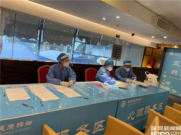 心理健康服務(wù)團隊正在心理服務(wù)區(qū)等待為隔離人員進行心理評估。