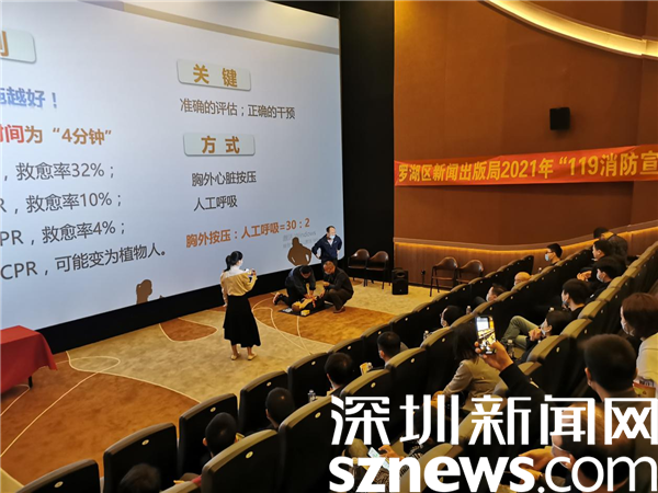 羅湖區(qū)委宣傳部常務(wù)副部長(zhǎng)章紅班對(duì)轄區(qū)行業(yè)“消防宣傳月”進(jìn)行部署和要求。隨后,安全專(zhuān)家講師羅靈在現(xiàn)場(chǎng)進(jìn)行了安全知識(shí)培訓(xùn)和心肺復(fù)蘇救助技能培訓(xùn)。