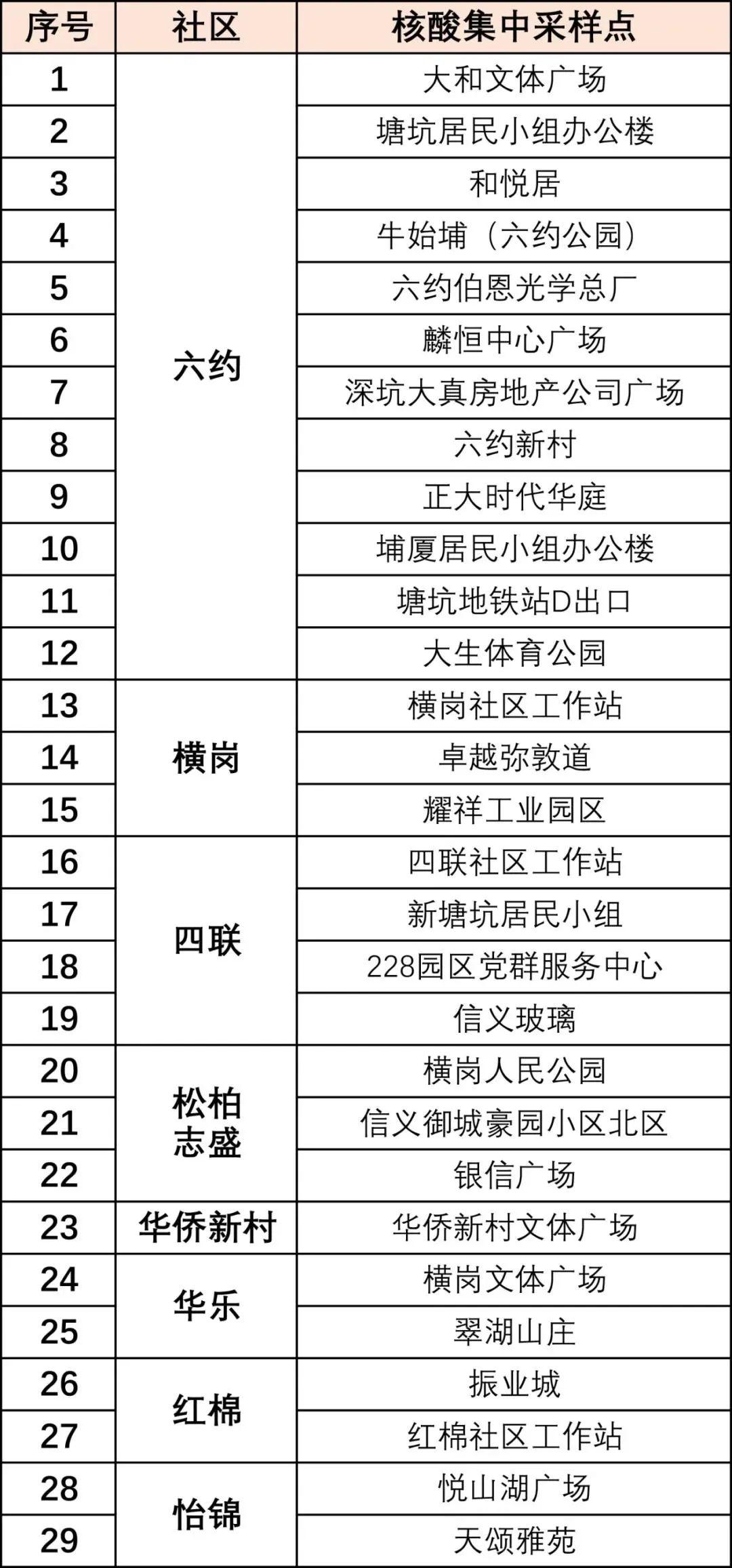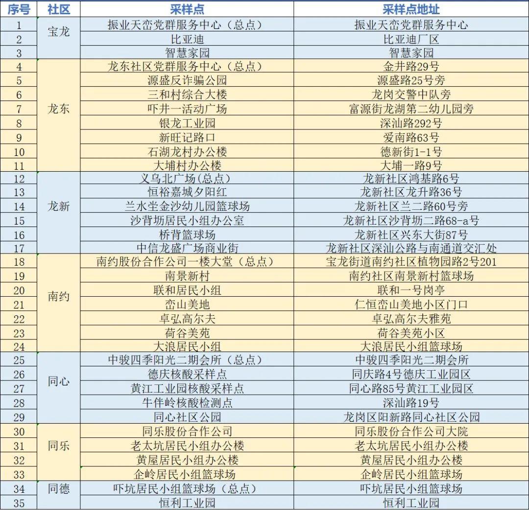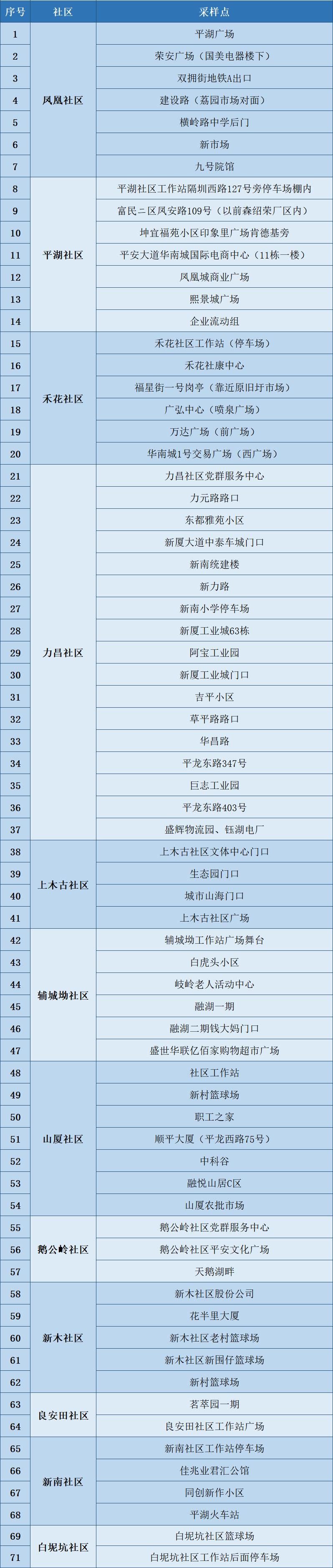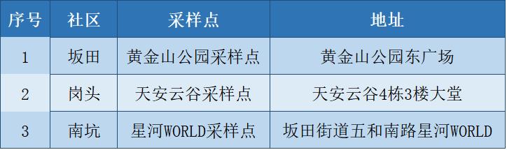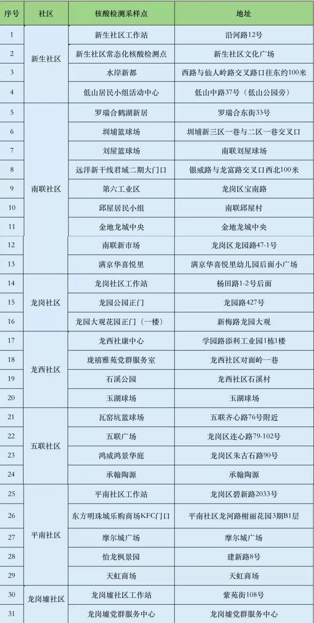 根據(jù)疫情防控需要,為最大程度保障人民群眾生命安全和身體健康,龍崗區(qū)各街道于1月10日開展新一輪免費(fèi)核酸檢測以下點(diǎn)位統(tǒng)計截至1月10日。各點(diǎn)位動態(tài)更新請以社區(qū)通知及現(xiàn)場實際情況為準(zhǔn)。