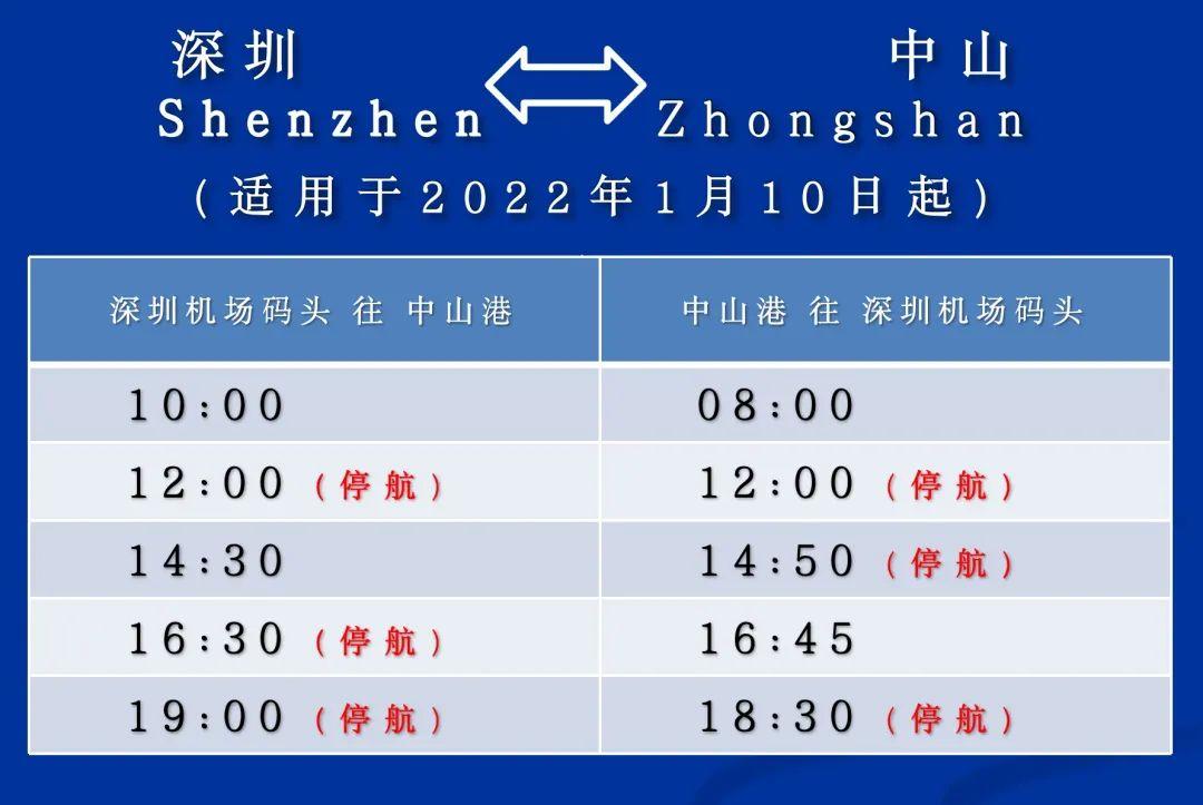 同時(shí),1月10日起,深圳機(jī)場碼頭至中山港航線船班保留每日2進(jìn)2出:10:00、14:30 深圳機(jī)場碼頭出發(fā)前往中山港;08:00、16:45 中山港出發(fā)前往深圳機(jī)場碼頭。