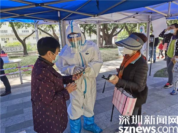 玉龍社區(qū)的核酸點(diǎn)位于金湖路邊的金湖公園,連接著銀湖、坭崗、玉龍三個(gè)社區(qū),每日的檢測(cè)量多則6000多人次,少則2000多人次。