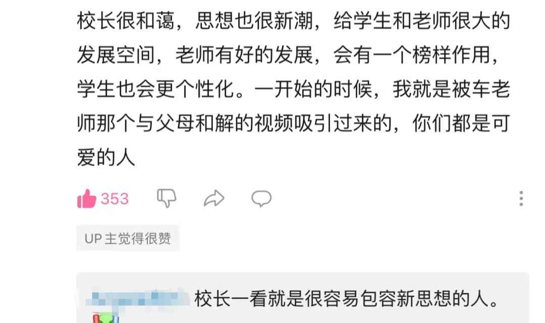 黃潔校長(zhǎng)回答了該UP主提出的很多問(wèn)題,黃潔表示,自己是一步一步從基層走上來(lái)的,她從大學(xué)畢業(yè)就當(dāng)老師了。從當(dāng)班主任開(kāi)始,再到年級(jí)長(zhǎng)、學(xué)生處主任、教學(xué)處主任……最后當(dāng)上校長(zhǎng)。