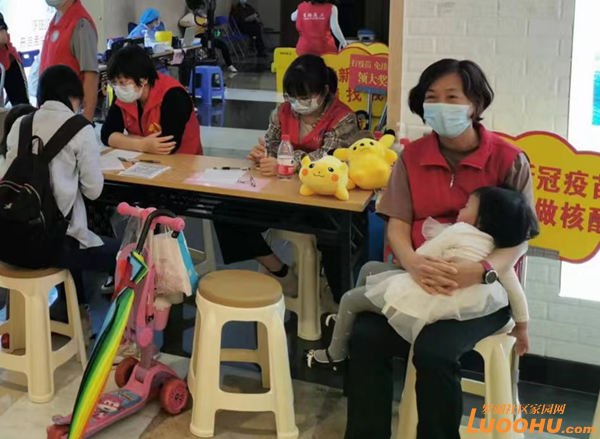 社工楊雨晨看到一個(gè)母親帶著剛滿3歲的大女孩來打第一針疫苗,懷里還抱著一個(gè)熟睡的孩子,填報(bào)信息時(shí)很不方便。楊雨晨連忙走過去,表示可以幫忙帶孩子,年輕的母親立刻把孩子交給了楊雨晨。楊雨晨接過孩子,感覺手中一沉,好重。已經(jīng)來來去去走動(dòng)一天的楊雨晨,其實(shí)早就疲憊不堪,但看著孩子熟睡的小臉,看著那位母親邊填報(bào)信息,邊照看著大孩子,她也就不覺得累了。