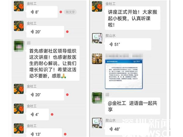 “大家下午好,今天我們講課的主題是《中老年人關(guān)節(jié)炎防治》,希望今天的講座能夠幫助到大家。”敖山水特意錄制了一段簡(jiǎn)潔的視頻,在開課前向居民朋友打招呼。記者了解到,敖山水從事普外科臨床工作20多年,有著豐富的臨床經(jīng)驗(yàn)。開課后,微信群開始熱鬧了起來(lái),敖山水將授課內(nèi)容通過語(yǔ)音發(fā)送,其助手整理成文案同步發(fā)到群上,實(shí)現(xiàn)音頻文字同步轉(zhuǎn)換。