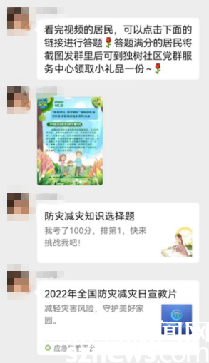 疫情防控期間,不宜開展人群聚集活動,但事關(guān)社區(qū)居民的公益講座卻不能停滯。對此,獨樹社區(qū)創(chuàng)新開展“云課堂”,通過線上視頻課程講解、線上互動、有獎競答等多種形式開展,讓居民群眾足不出戶就能學習防災(zāi)減災(zāi)相關(guān)知識。