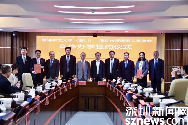 讀特客戶端·深圳新聞網2022年5月20日訊(記者 劉嘉敏)5月20日上午,羅湖區(qū)人民政府與香港中文大學(深圳)舉行合作辦學簽約儀式,標志著禮文學校正式落地羅湖。深圳市教育局副局長趙立,羅湖區(qū)委副書記、區(qū)長范德繁,區(qū)領導左金平、馮健與香港中文大學(深圳)副校長阮健驄、協(xié)理副校長李學金等共同見證簽約儀式。