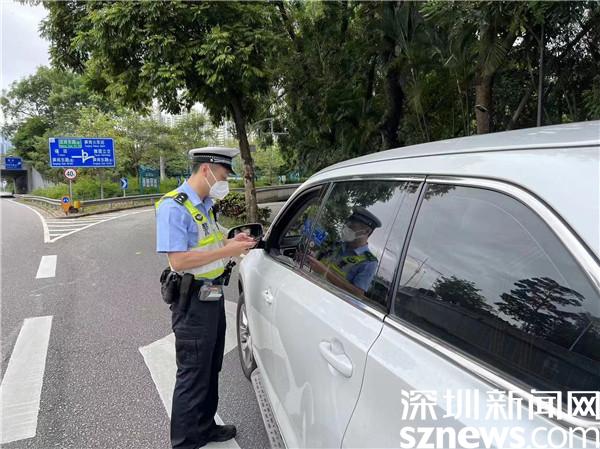 5月24日下午,羅湖交警大隊(duì)機(jī)訓(xùn)中隊(duì)組織警力在人民公園路開展卡口專項(xiàng)整治行動期間,發(fā)現(xiàn)一輛車牌號為粵S7***9的小車涉嫌多次違法未處理,于是立即示意該車駕駛員靠邊停車接受檢查。