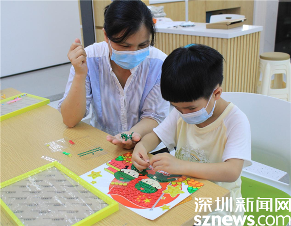 最后一個(gè)來到的鄭權(quán)桸小朋友屬于“空降”,因?yàn)樗麤]報(bào)上名。招募時(shí),15個(gè)名額很快就報(bào)滿了。但是鄭權(quán)桸很想?yún)⒓舆@個(gè)活動(dòng),媽媽就帶著他來試試,現(xiàn)場社工也很歡迎他的加入。鄭權(quán)桸小朋友全神貫注投入到畫作中,把每個(gè)紐扣都放在最佳位置,直到把全部紐扣貼完。他是最后一個(gè)來,也是最后一個(gè)走的。