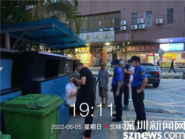 當(dāng)天晚上19點-21點,小區(qū)黨員和義工在文錦花園、海富花園垃圾分類投放點與小區(qū)垃圾分類督導(dǎo)員共同開展垃圾分類夜間督導(dǎo)活動,引導(dǎo)居民分類投放垃圾,并為居民詳細講解和宣傳廚余垃圾分類的相關(guān)知識。同時聯(lián)同街道執(zhí)法隊開展“夜間執(zhí)法”,對所檢查的小區(qū)廚余垃圾分出量較低的物業(yè)小區(qū)開展執(zhí)法檢查,一方面指導(dǎo)垃圾分類督導(dǎo)員切實履職,另一方面對于亂投放垃圾的行為,對其責(zé)令改正。
