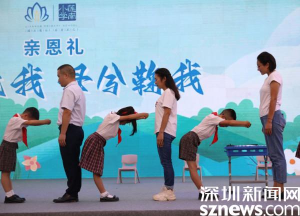 活動(dòng)由詩(shī)歌吟唱《鹿鳴》拉開(kāi)了序幕?!案纲馍?,母兮鞠我”,熒幕上播放著子女和父母溫馨互動(dòng)的視頻,隨后上演的親恩禮,表達(dá)了子女對(duì)父母的深深?lèi)?ài)意。當(dāng)主持人問(wèn)到一位家長(zhǎng)時(shí),她眼含熱淚地說(shuō):“我此刻很激動(dòng)也很幸福,孩子給我捶背還給我寫(xiě)卡片,感謝這次儀式感滿(mǎn)滿(mǎn)的活動(dòng),拉進(jìn)了我們家長(zhǎng)和孩子的距離,真的非常暖心!”