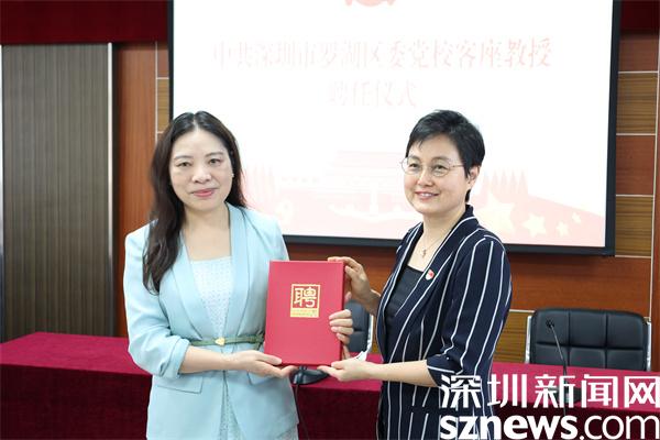 現(xiàn)場,劉亞峰還為中共深圳市委黨校嚴(yán)紅梅副教授頒發(fā)聘書,聘請其為羅湖區(qū)委黨校客座教授。