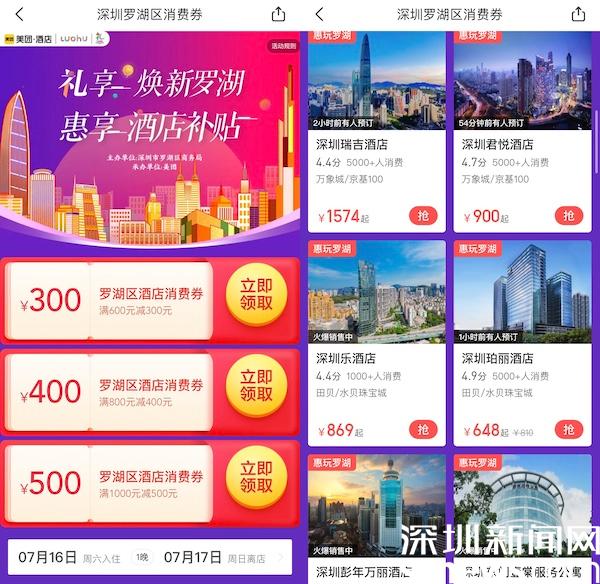 7月16日,羅湖區(qū)會(huì)同羅湖區(qū)酒店行業(yè)協(xié)會(huì)、美團(tuán)推出“禮享煥新羅湖,惠享酒店補(bǔ)貼”活動(dòng),投入33萬扶持資金,用于支持酒店、住宿消費(fèi)。
