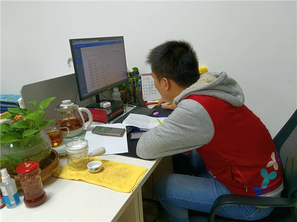 1月14日,因?yàn)榫幼〉赜忻芙诱?,被通知居家隔離,但他并沒有停止工作,依然在家里配合數(shù)據(jù)組進(jìn)行流調(diào),每天打電話追蹤被調(diào)查者信息,錄入系統(tǒng)更新。