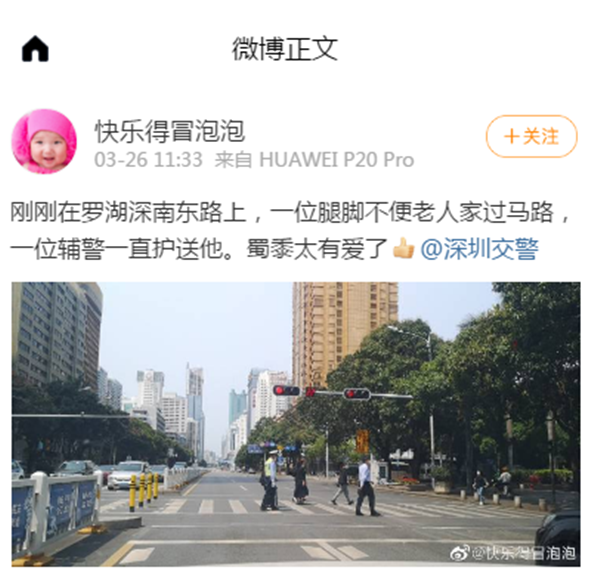 羅湖交警護送老人過馬路 網(wǎng)友點贊:蜀黍太有愛了!