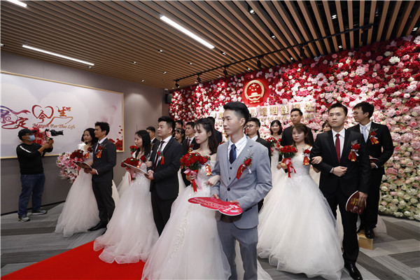 ?“1212,要愛要愛!我們結(jié)婚啦!”,“雙十二”對大部分人來說是一個購物的好日子,但對打算步入婚姻的新人們來說,卻是一個不可錯過的登記好時機。12月12日,羅湖區(qū)婚姻登記處四處洋溢著歡樂的笑聲,12對新人在滿是玫瑰花的登記處中舉行集體結(jié)婚儀式。據(jù)悉,這也是疫情以來羅湖區(qū)首場結(jié)婚登記集體頒證儀式。